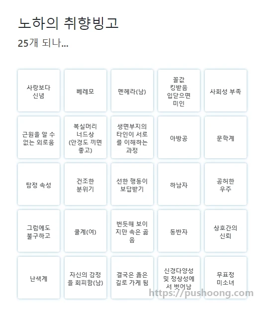옛날에 취향빙고 하려고 넣어봤던거 찾았다