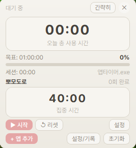 클로드로 홈페이지 스킨 만들다 보니까 프로그램도 만들수 있나 싶어서 내가 필요한 타이머 만들어봤다... 작동 잘 됨!